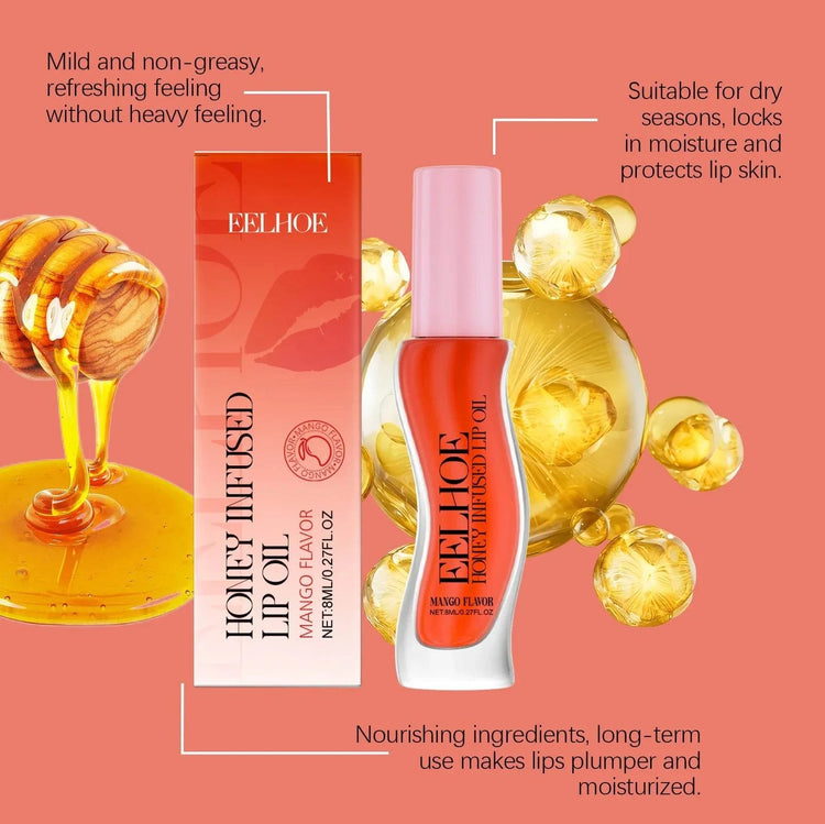 Eelhoe 8ml Honey Mango Flavor Moisturizing Lip Oil Nourishing Lips Enhance Gloss Care Exfoliator Lip Shine Plumping Lip Oil